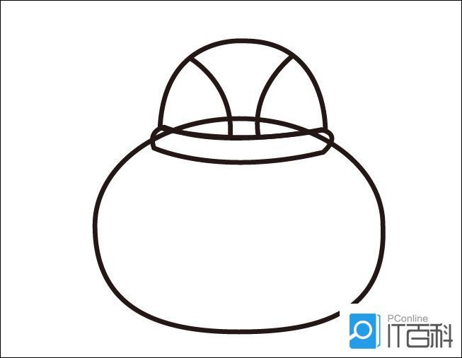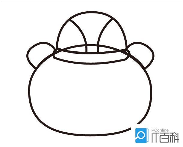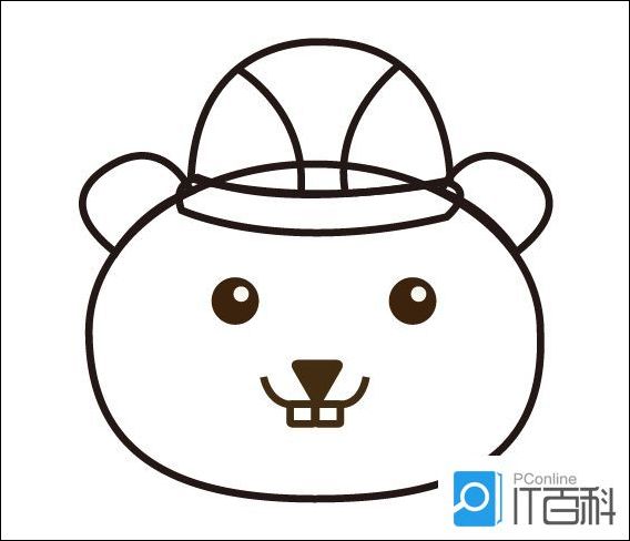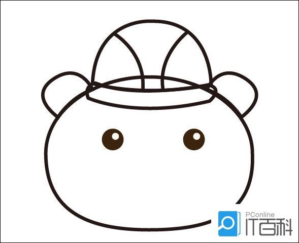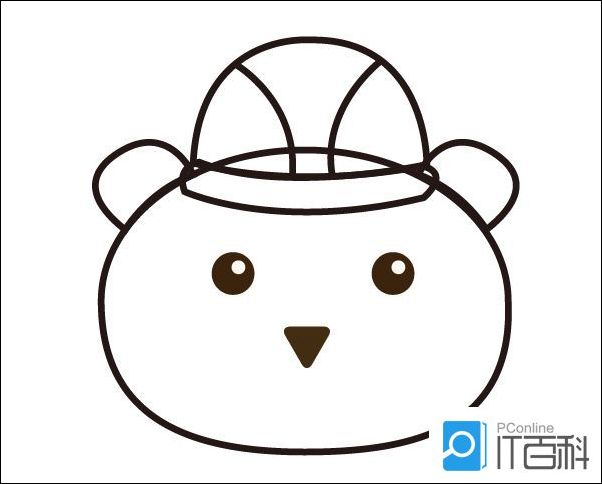 3、在帽子左侧画出一只耳朵,然后复制一个,镜像后放在帽子右侧,连接在小熊的头部。