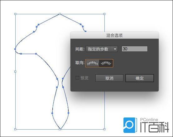 建立混合对象:选择【对象 – 混合 – 混合选项】,按照下图的设置后,点击「确定」