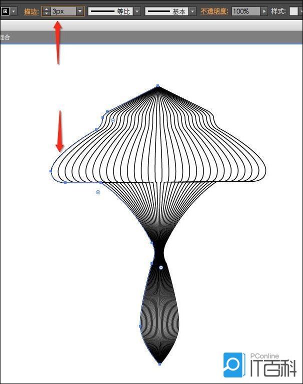 双击选中蘑菇最左边路径,设置描边为 3pt 或 3px。