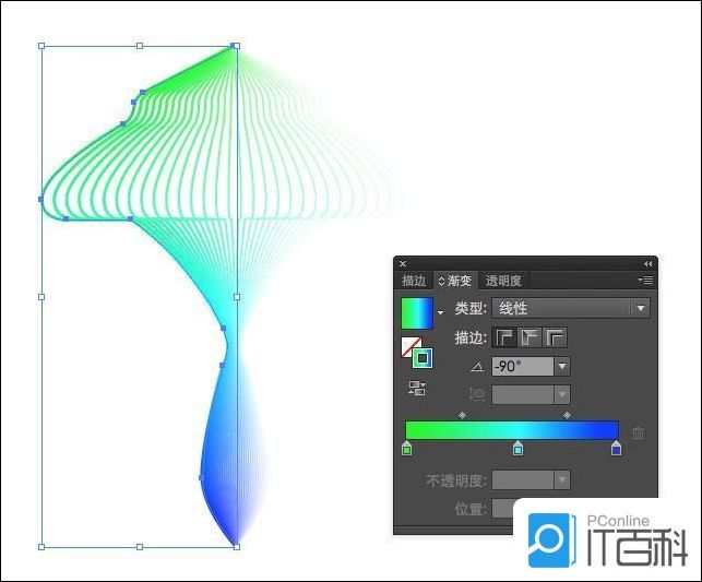 打开渐变面板「窗口-渐变」填充描边颜色为渐变色,从绿到青到蓝。(可参考下图设置)
