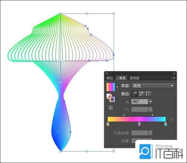 选中另一边路径,渐变色为彩虹色。(可参考下图设置)