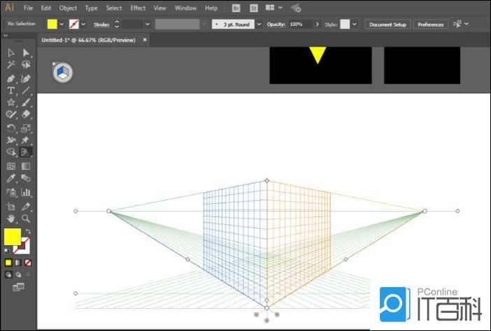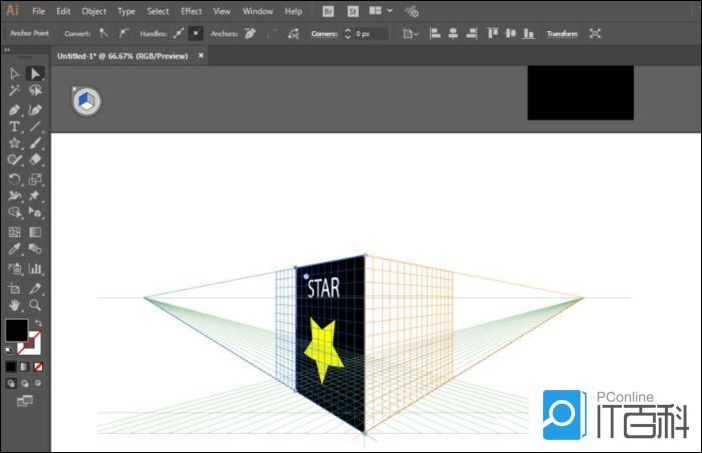 3、打开 透视网格工具 ,先把矩形挪动到上方。