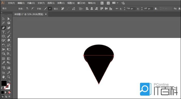 2、钢笔工具绘制三角形,锚点工具调整锚点。进行 联合 。