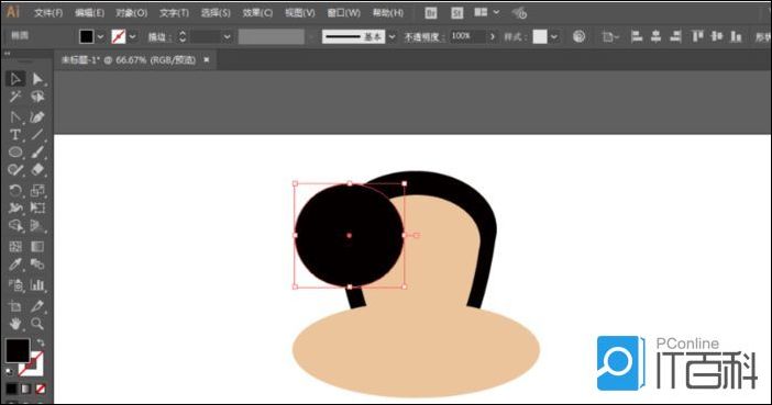 4、椭圆工具绘制圆形,制作耳朵,锚点工具调整锚点。