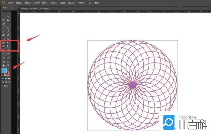 将圆形全部选中,在工具栏中选择形状生成器。