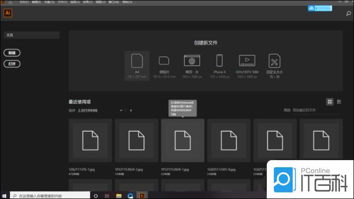 打开AI软件,点击创建一个新的空白窗口,同时命名保存好。