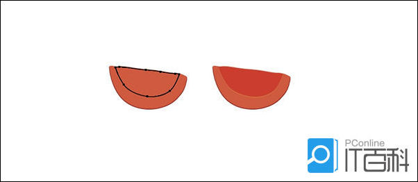 以番茄切片为例,并绘制两条短路径,设置颜色和不透明等方法,前面已讲过。