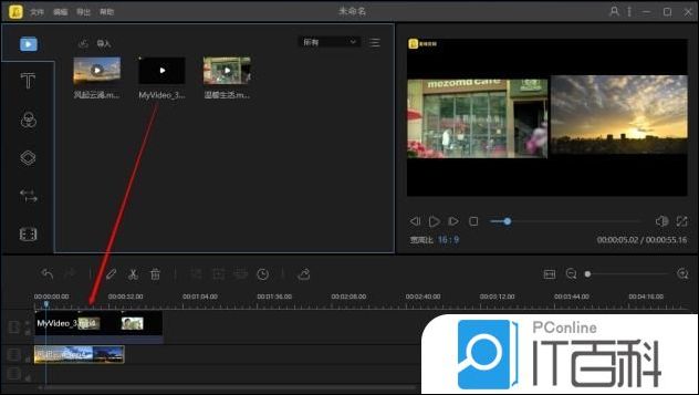 3、将导出的视频拖入软件并将其拖至下方的视频编辑轨道,再将第二个视频片段拖至下方的画中画轨道。