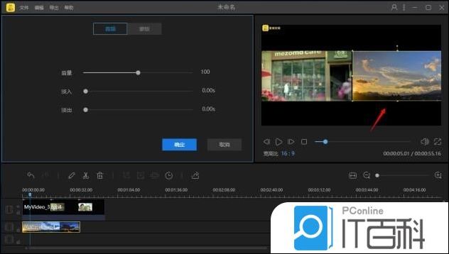 4、双击画中画轨道的视频,对它的大小、位置 进行调整。预览区内的两个视频位置确认无误后,点击“导出”将分屏视频导出即可。