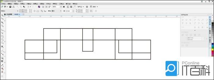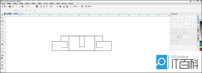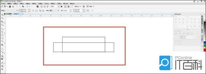 再点击矩形工具绘制一个大矩形对齐图形,选中图形水平翻转复制,再对齐图形,点击轮廓图工具给大矩形拖出一个内部轮廓。