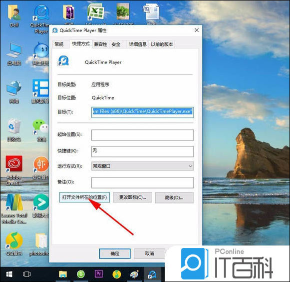1、可能是QuickTime Player的原因,可以找到软件安装目录,重新安装。右键点击QuickTime Player图标至属性