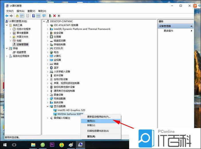 3、显示适配器下的 主显禁用 。然后 重启PR