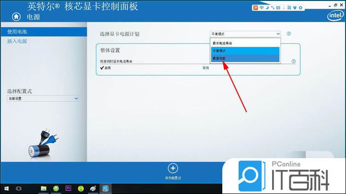 3、 将显卡电源计划选择为最高性能 。设置成功后, 重启PR
