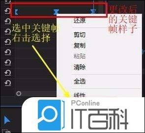 8、鼠标选中所有关键帧,再右击鼠标,选择“ 贝塞尔曲线 ”,完成缓和过渡