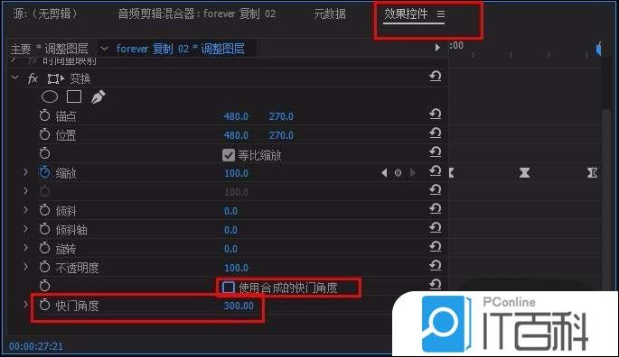 9、取消勾选“ 使用合成的快门角度 ”,修改“ 快门角度 ”为300(可自定,也可以为它设置 关键帧 ,方法同上),播放查看效果即可(上传动图又失败、、我不想说话了--、)