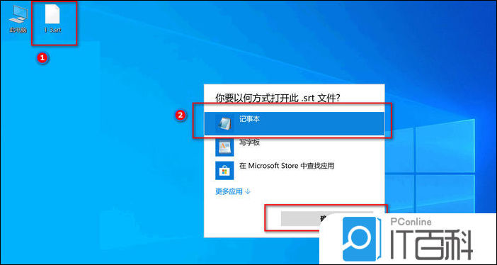 3、回到字幕文件所在的文件夹后鼠标右击 该字幕文件后 ,在弹出的对话框中选择以记事本打开文件,随后点击 “确定”。