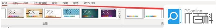 2.首先打开PPT和一个做好的PPT,找到菜单栏中的设计,选择下拉框中的幻灯片尺寸;