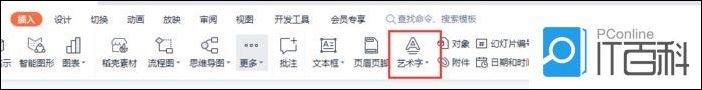3、然后在插入选项下面就会出现很多的功能,可以找到艺术字