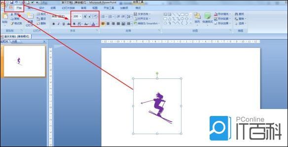 3.选择文本框——开始——设置字体大小为200并按Enter确认——选择紫色作为颜色。