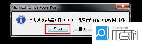 3、幻灯片模拟玩之后,程序就会自动提示是否保存这种排练时间,点击是就可以了
