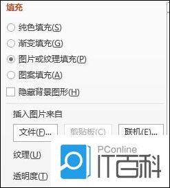 3.插入漂亮的背景图片:选择“图片或纹理填充”,在“插入图片来自”有三个按钮,一个是自“文件”,可选择来本机电脑存备的PPT背景图片,一个是自“剪贴板”,是通过本机电脑文件复制存备的图片,第三个联机,可搜索来自“office.com”提供的背景图片,需联网哦。如图所示。