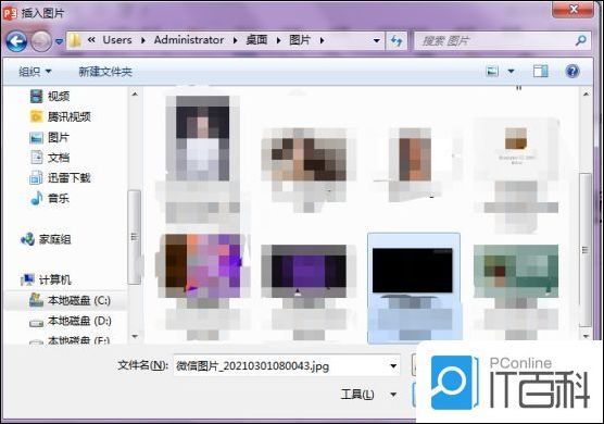 4.单击“文件”按钮,弹出对话框“插入图片”,选择图片的存放路径,选择后按“插入”即可插入你准备好的PPT背景图片。如图所示。
