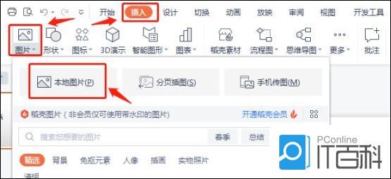3.然后在模板下面的方框里插入图片,点击“插入”菜单栏里“图片”选项,选择“本地图片”,如下图所示。
