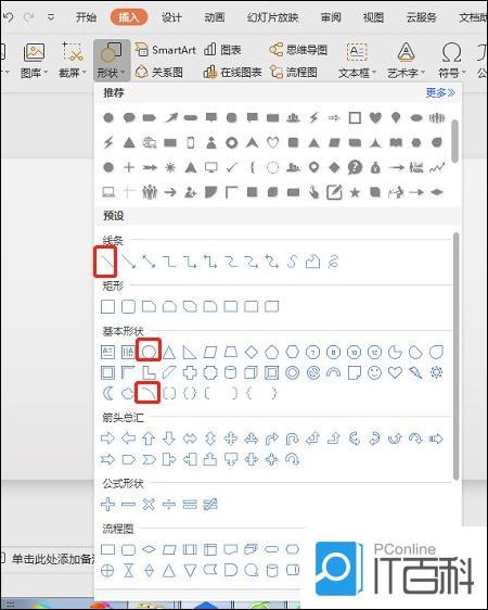 2、点击插入”形状“,选择合适的形状绘制出火柴人。