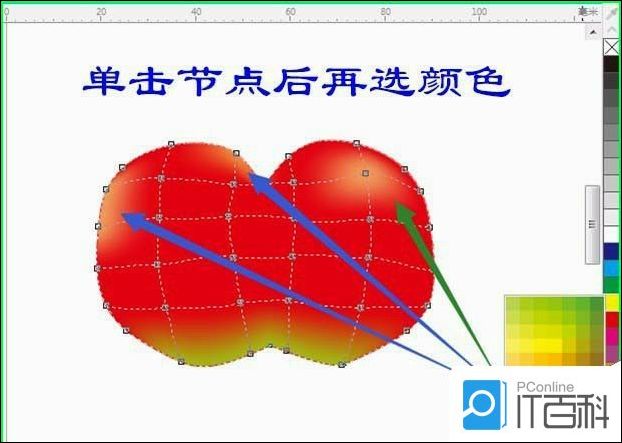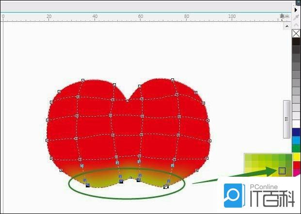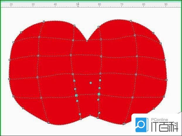 2、选苹果形状填充和右击红色,用“网状填充”工具,属性栏中改5×5或4×4,如图所示: