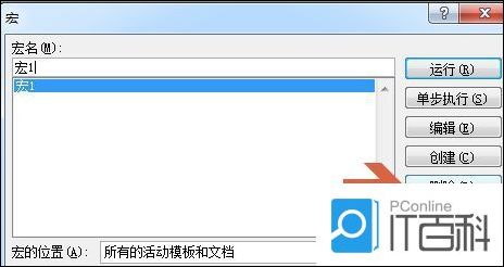 6.如果想删除宏,可以选中宏后,点击“删除”按钮。
