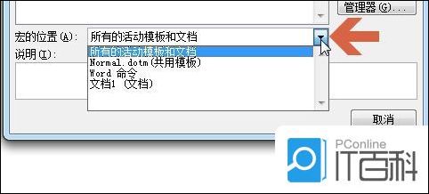 4.在宏窗口的“宏的位置”处可以选择要查看的位置。