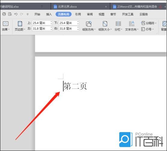 4、然后再次点击鼠标,使鼠标光标停留在第二页,如下图所示。