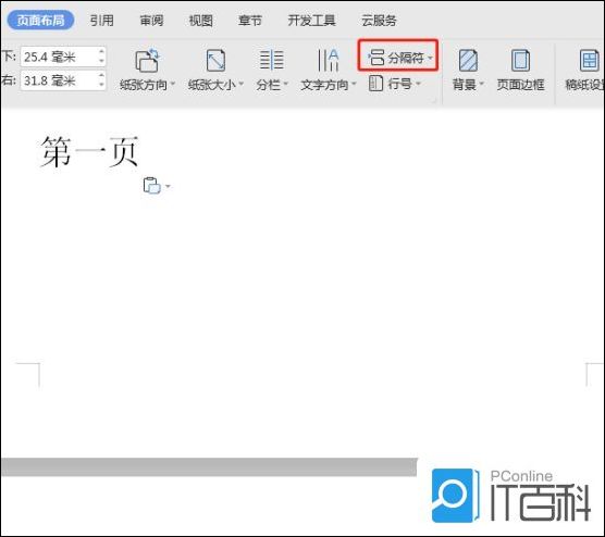 2、菜单栏点击页面布局,在页面布局下有一个分隔符工具,如下图所示。