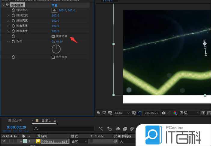 3、在上方效果控件的动态拼贴中 勾选镜像边缘。