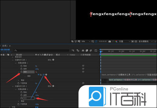 5、按住Alt键,点击第一个不透明动画中偏移前面的时钟图标,链接到第2个不透明度动画中的偏移上,结束设为百分之3左右。