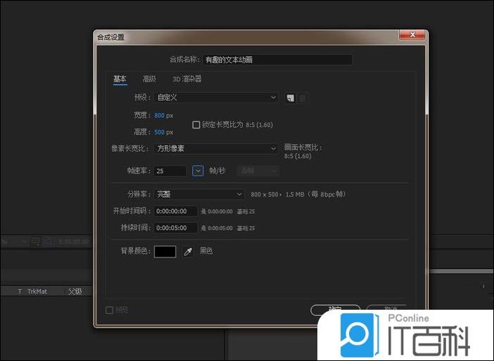 1、打开AE软件,命名有趣的文本动画,调整相应的参数。