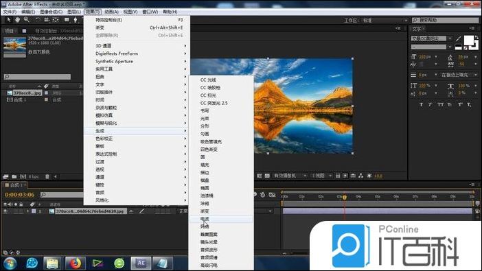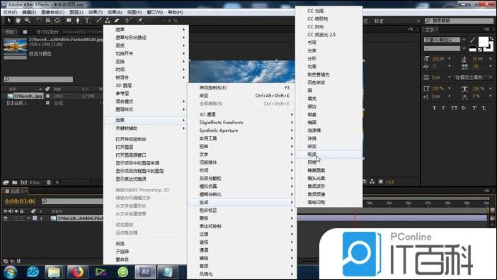 3、接下来的重点来了,选中素材,依次选择: 效果-生成-电波