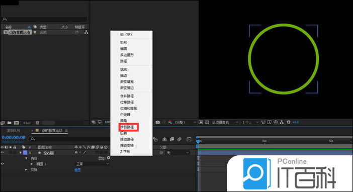 3、选中空心圆添加 修剪路径;