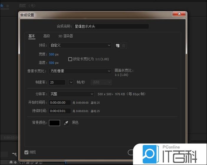 1、打开AE软件,新建合成,命名星爆显示片头,调整相应的参数。