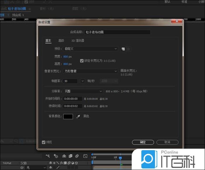 1、打开AE软件,命名粒子进场动画,调整相应的参数。