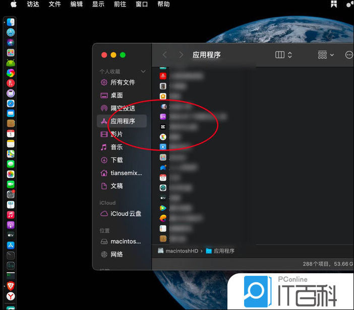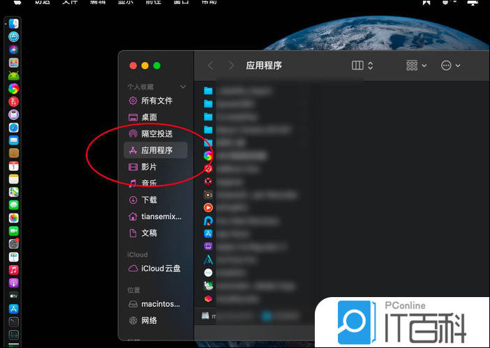 在macosbigsur点击访达边的应用程序,如图示。