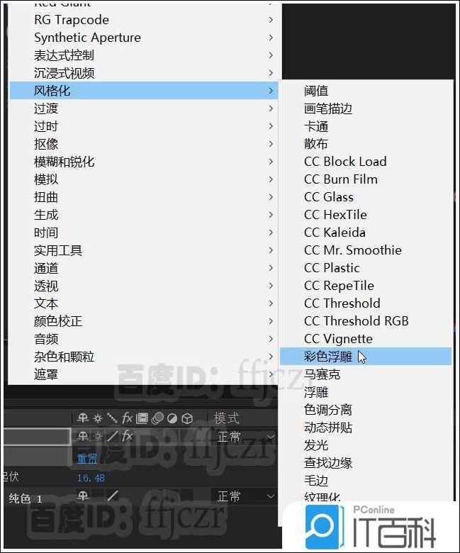 3、给文字添加效果, 风格化里的 彩色浮雕 。