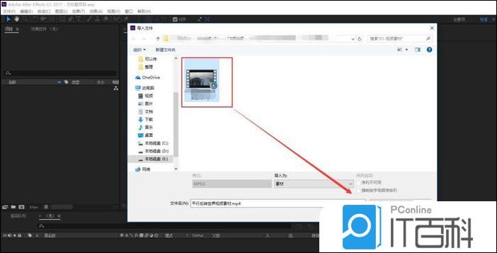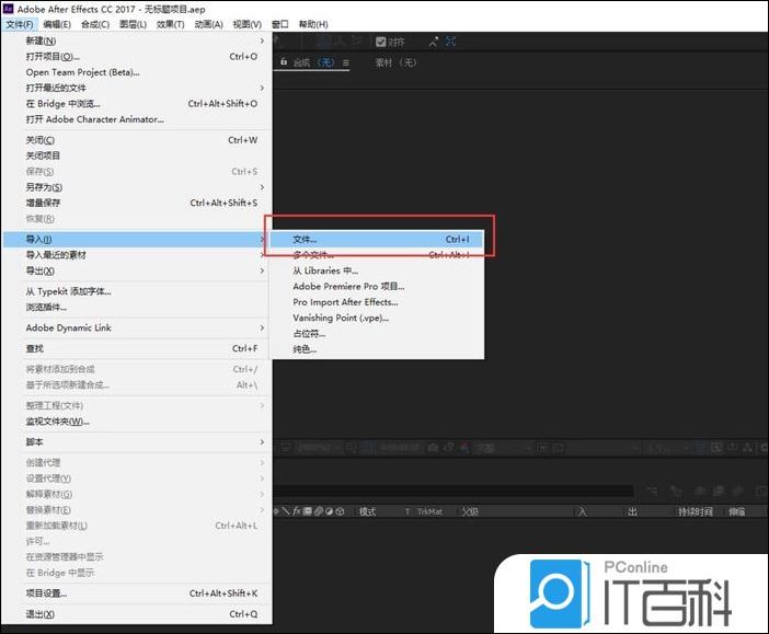 2、选择 文件菜单栏 ,在文件菜单栏中找到 导入命令 ,在导入中单击文件选项,会打开“ 导入 ”窗口,在导入窗口中找到并选择要进行效果设置的 视频素材 。