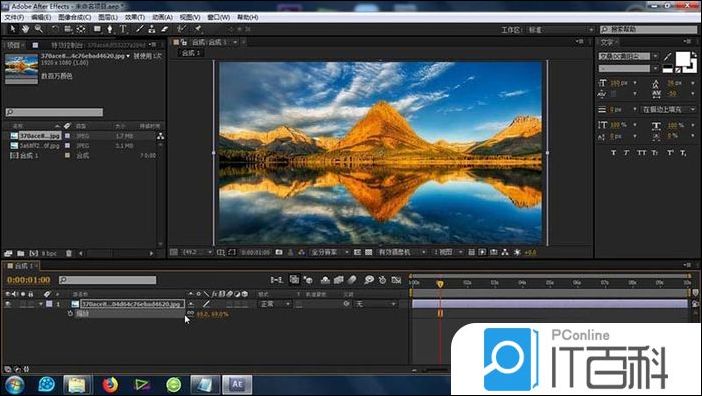 1、首先就是素材的导入,这个导入的方法很简单,不再赘述,将素材库的素材拉至合成里面的 时间线 上