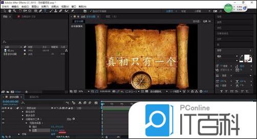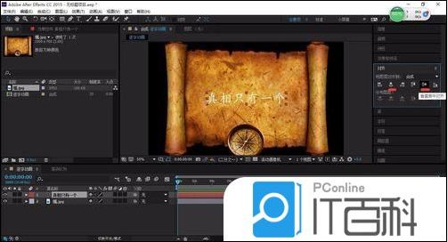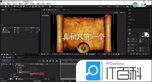 7、在时间线面板中,选择 "真相只有一个" 层,按住Enter键,更改该图层名称为" 文字 "动画,如下图所示。