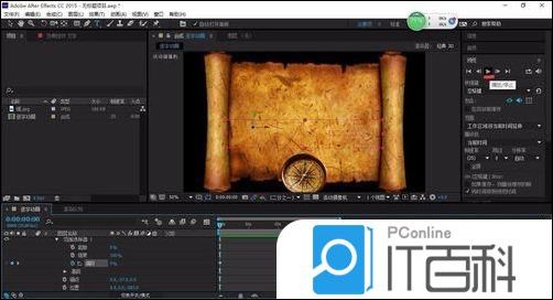 10、将时间调整到0:00:00:00帧的位置,选择预览面板,单击"播放"按钮,如下图所示。