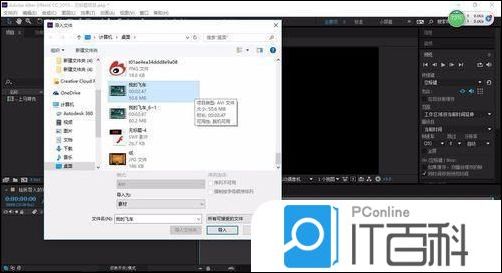 4、打开项目面板,右击该面板,在弹出的快捷菜单中选择" 导入>文件..." 命令或按住 Ctrl+I键打开【导入文件 】对话框,选择名为"我的飞车"的视频,单击" 导入 "按钮,即将" 我的飞 车"视频导入到项目面板中,如下图所示。