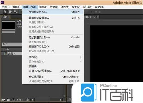 1、首先,我们打开“AE”,并创建一个新的“ 合成 ”(快捷键ctrl+n)。
