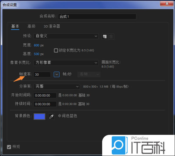 2、首先, Ctrl+n 新建一个合成, 帧速率一般建议调整到25帧以上, 其他保持默认,点击确定。