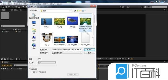 1、首先就是素材的导入,这个导入的方法很简单,不再赘述,将素材库的素材拉至合成里面的时间线上